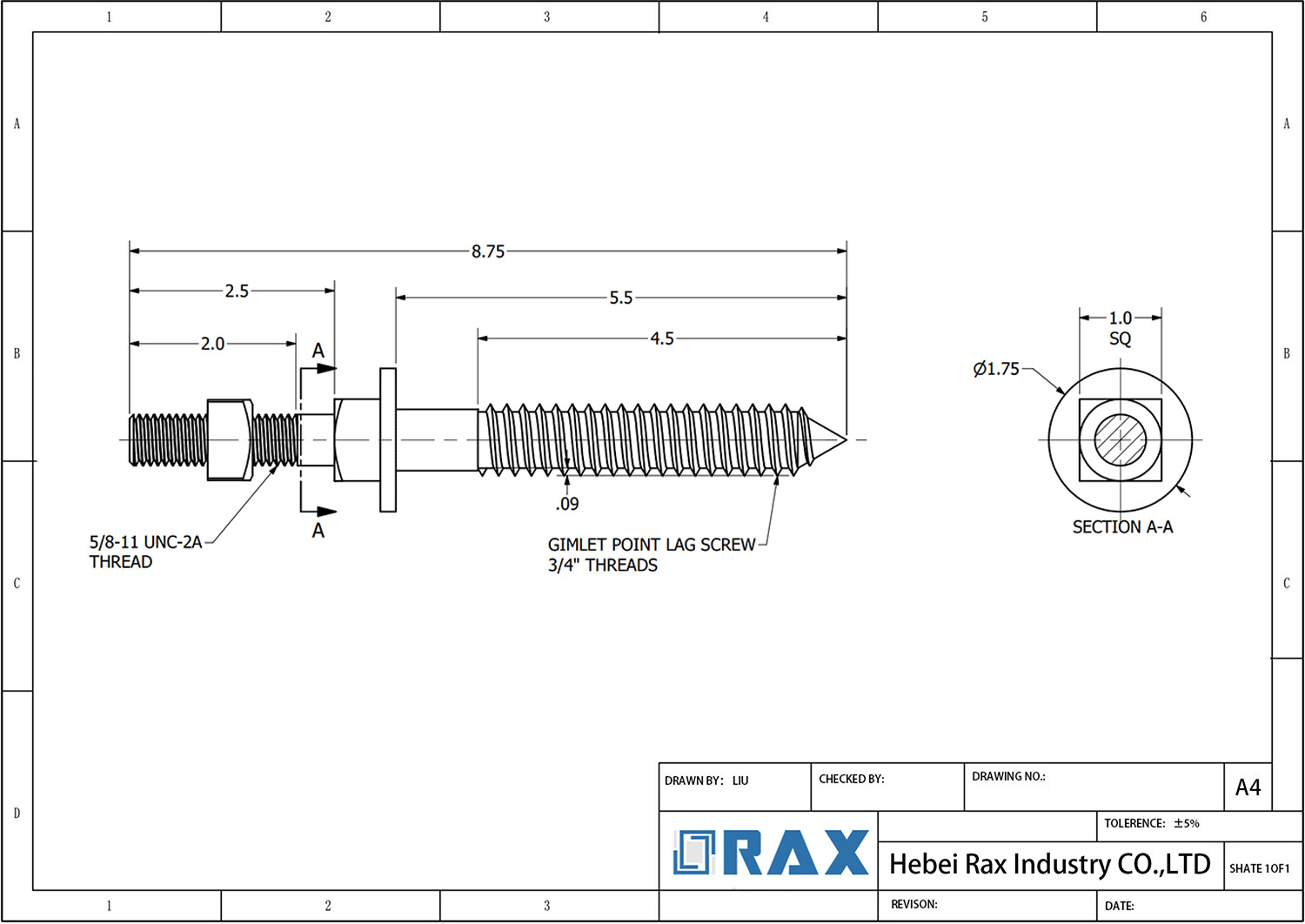 | Key Features | Integral forged washer-nut, gimlet point with sharp rolled threads, forged square washer head, roll threaded stud with assembled square nut |
