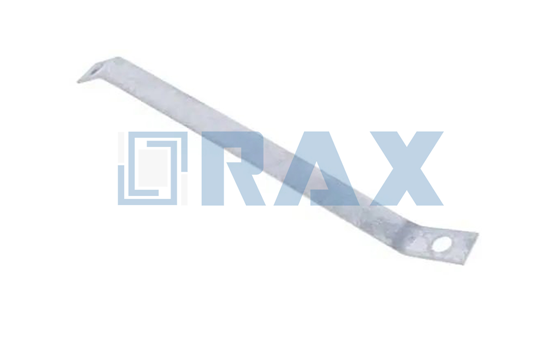 The Extension Bolt Reinforcing Strap is a galvanized steel component that provides additional structural support for messenger cables on utility poles in aerial communication and power line systems. It works with cable extension bolts when a second messenger cable needs installation at the same level and side as an existing cable, supporting cable suspension clamps during parallel line installation, particularly in areas with long spans or heavier loading stresses.